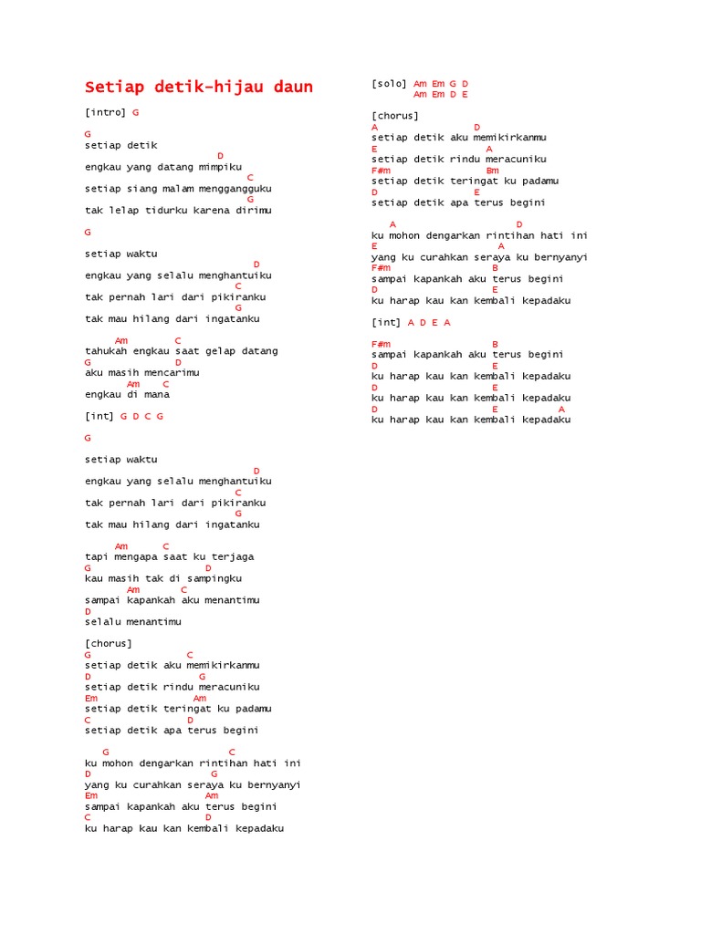 Chord Lagu Hijau Daun Setiap Detik Vebma Com