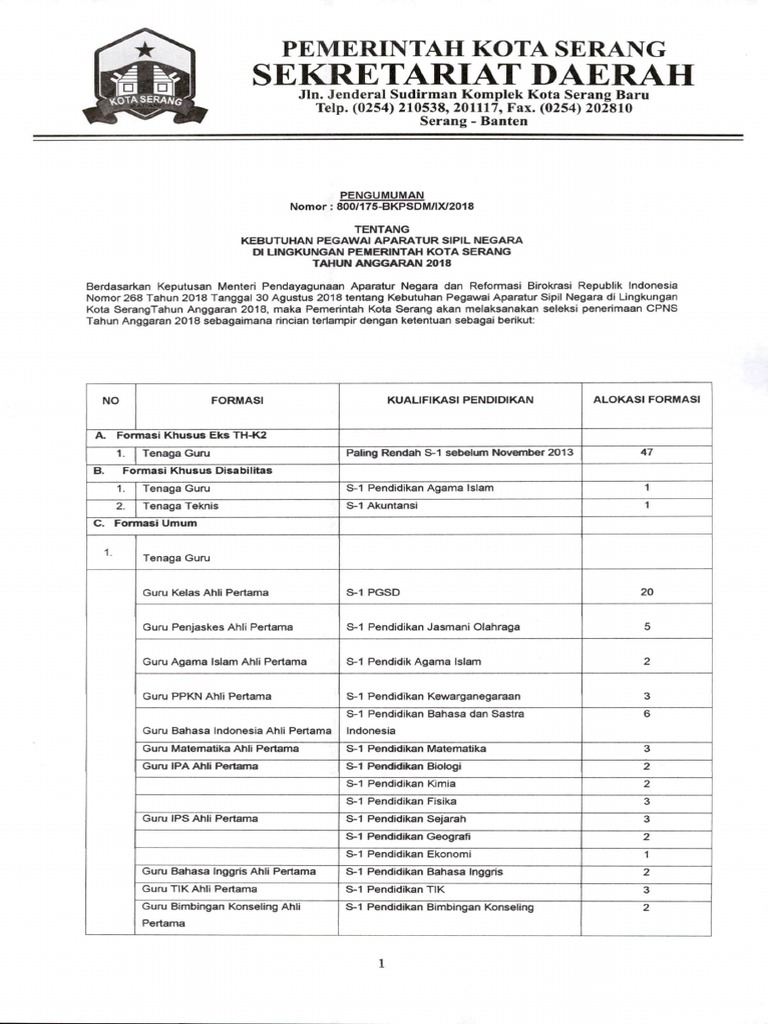 Surt Pengumuman Cpns Kota Serang 2018 Fixxxxxxxxxx Pdf