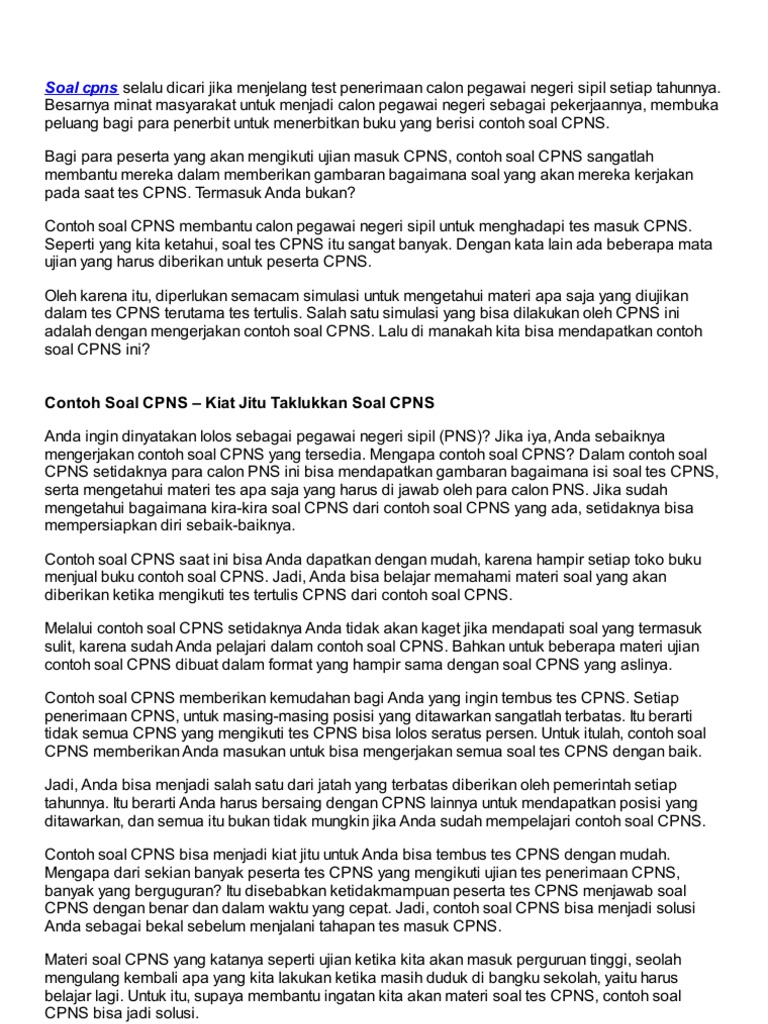 Contoh soal cpns sudah banyak beredar di internet.
