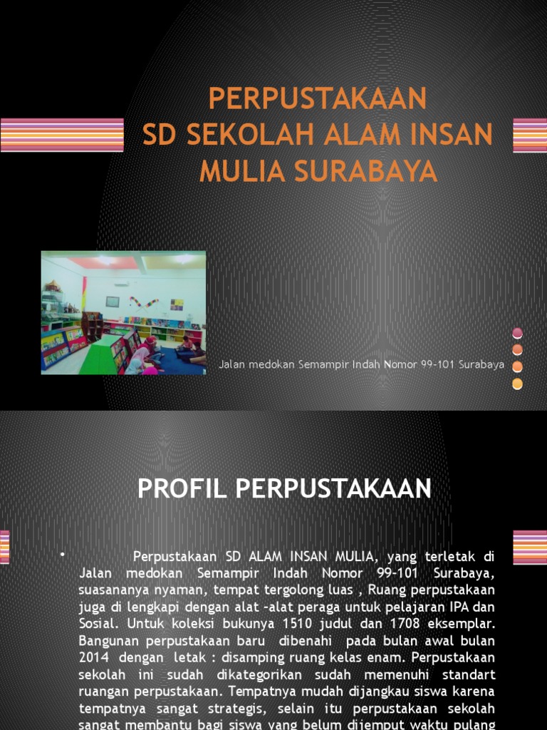 Perpustakaan sekolah sdn kauman 07 batang. Form instrumen profil perpust sekolah 2018. Download ppt profil perpustakaan sd tumbuh satu. Perpustakaan sekolah dikelola oleh kepala perupstakaan dan dibantu staf perpusatkaan sekolah. Di dalamnya dijelaskan juga tentang sistem klasifikasi buku ddc (dewey decimal classification).